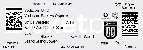 Vodacom URC Vodacom Bulls vs Ospreys |